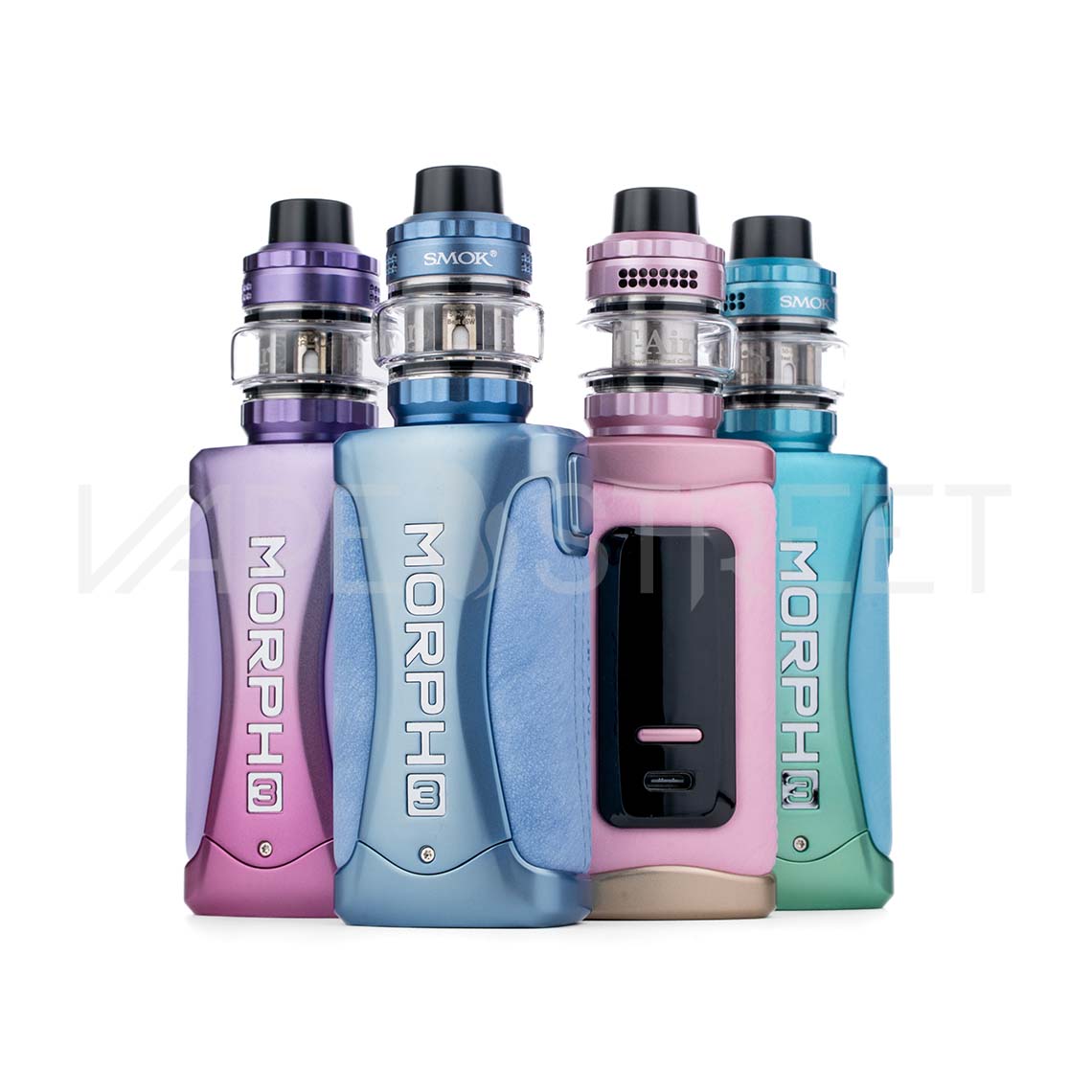 SMOK Morph 3 Kit is a formidable dual-battery vape kit crafted to grant you unparalleled control over your vaping experence. Boasting an impressive wattage range spanning from a gentle 1W to a robust 230W, the Morph 3 emerges as the ideal companion for vapers at various stages, from novices to intermediates, seeking to savor a consistently smooth and remarkably flavorful vape. The Morph 3 Kit not only accommodate both 18650 and 21700 batteries (sold separately). Ensuring you're never left without the power needed for an uninterrupted vaping session. The included T-Air Subtank elevates your experience further, delivering a delightful and rich vaping experience through its innovative top airflow system. Its leak-proof top-filling design simplifies refills, sparing you from any unwanted mess. What truly sets the Morph 3 apart is its push variable wattage mode, enabling you to fine-tune the wattage output to your precise preferences. Additionally, the kit comes complete with two low-resistance coils, providing an array of options to explore diverse vaping styles. With the SMOK Morph 3 Kit, you're not just vaping; you're experiencing the next level of vaping and you can start it here at Vape Street!