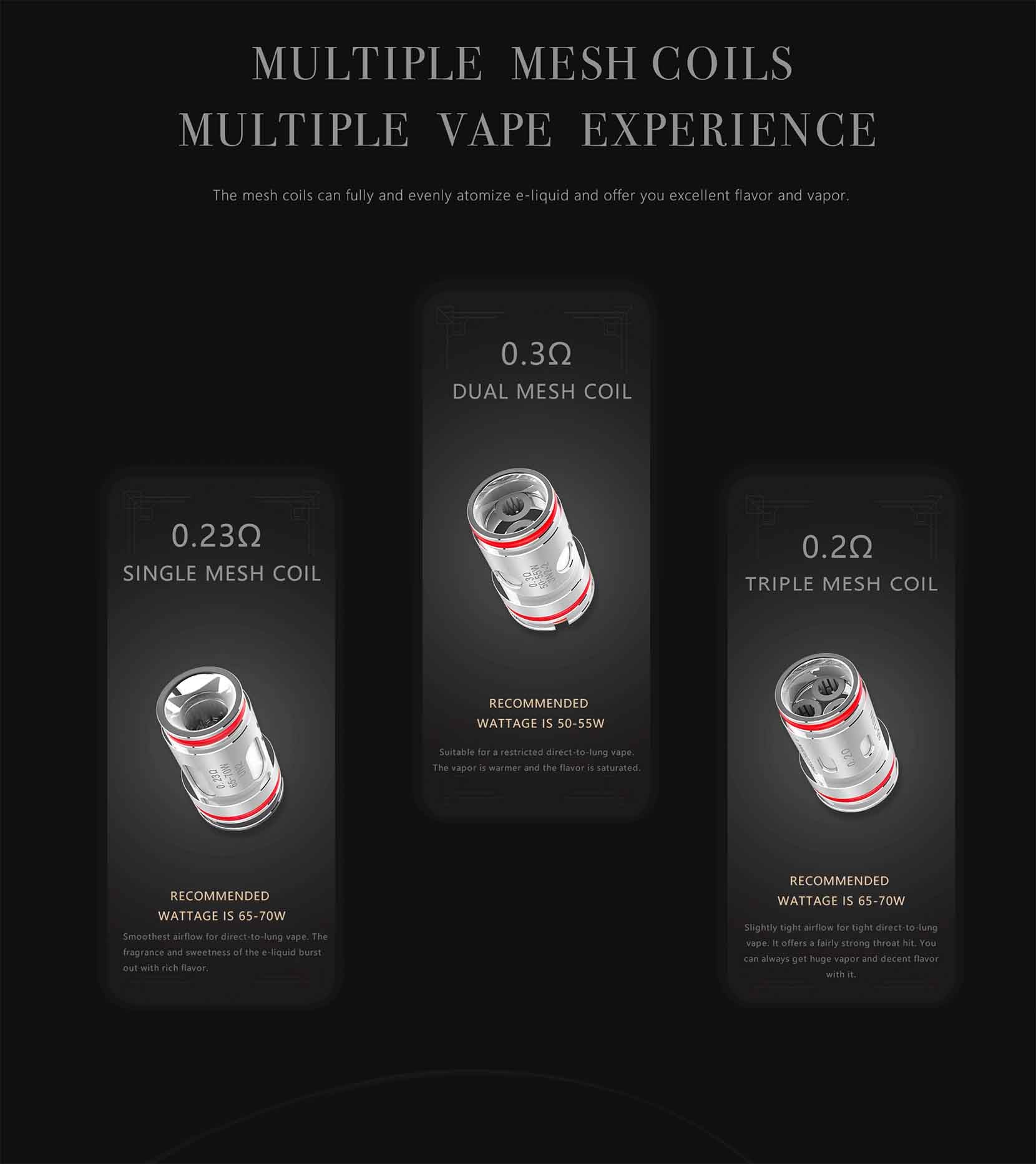 - 0.23 ohm UN2 Mesh Coil 65 to 70W