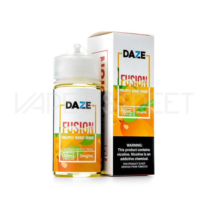 7 Daze Fusion Pineapple Mango Orange is a multiplex fruity flavor that's perfect for vapers who enjoy tropical citrus fruits. The combination of sweet and tangy fruit flavors in this e-juice will tantalize your taste buds. 7 Daze has created a flavor hard to resist, with fruits like pineapple and mango, and citrusy oranges. Just imagine a mixed fruit bowl of freshly cut pineapple, mangos, and seedless oranges, you're mouth waters just thinking about it. Fusion Pineapple Mango Orange comes in a 100mL chubby gorilla bottle for different nicotine levels of 0mg, 3mg and 6mg now found here on Vape Street. 7 Daze has never disappointed with their e-liquid flavors and they've definitely outdone themselves with this new flavor.