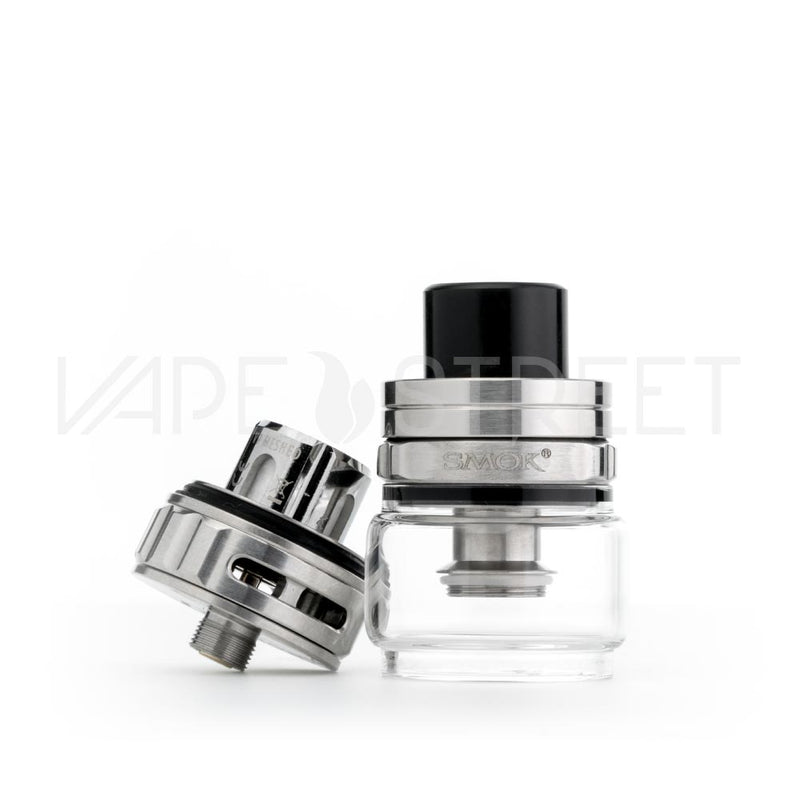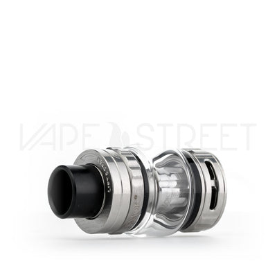 The TFV9 is a traditional looking vape tank that measures at 28mm base, however with the bubble glass tank section, the maximum diameter of the TFV9 is 30mm. With the TFV9's bubble glass, it can accommodate 6.5ml of eliquid. Maintaining a convenient filling mechanism, the TFV9 features a pull and twist open fill port. This allows users to quickly and single handedly fill their tanks in a fluid motion. Included in the package is a single replacement glass tank section, adding an extra level of peace for those "just in case" moments.