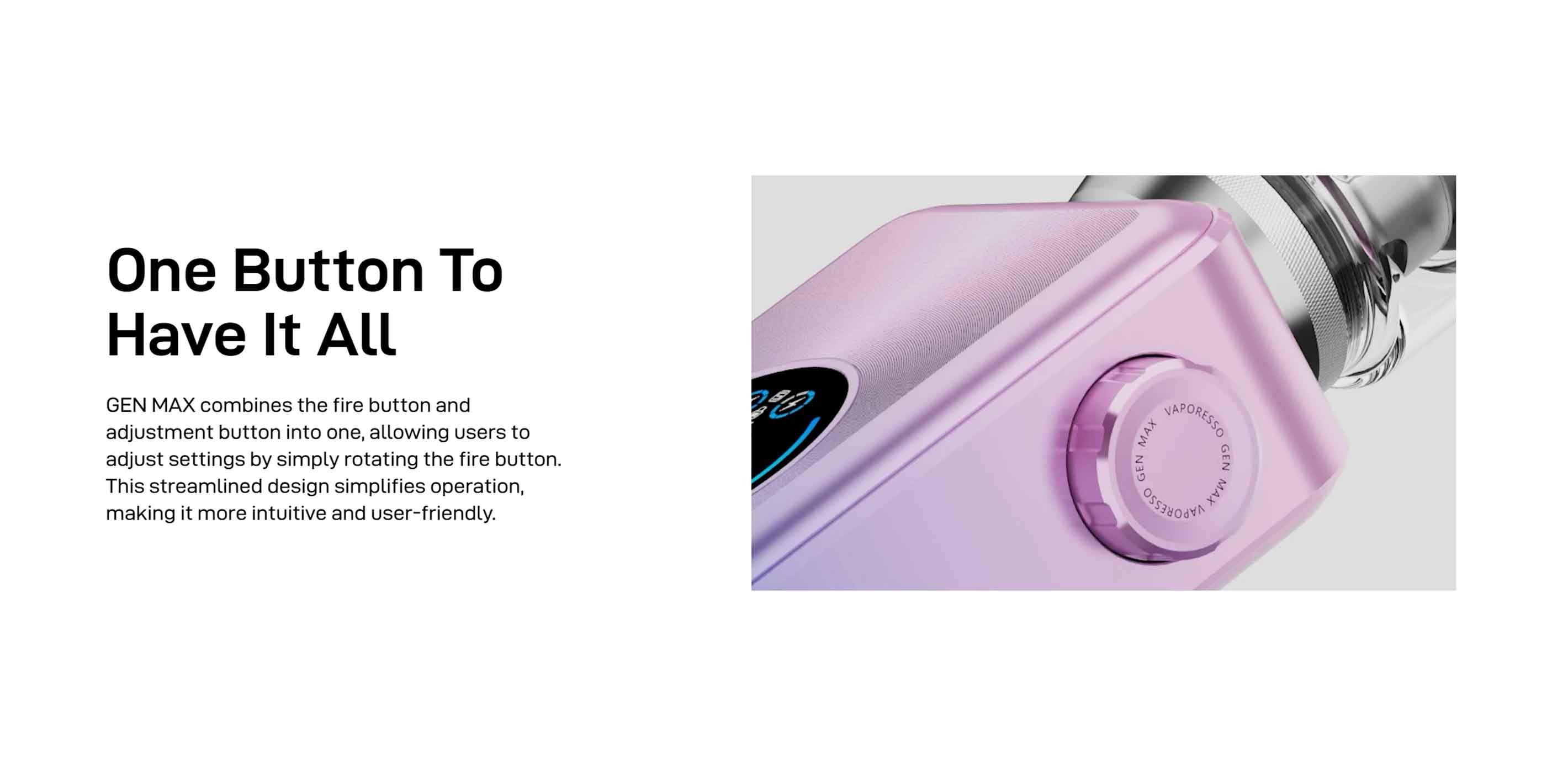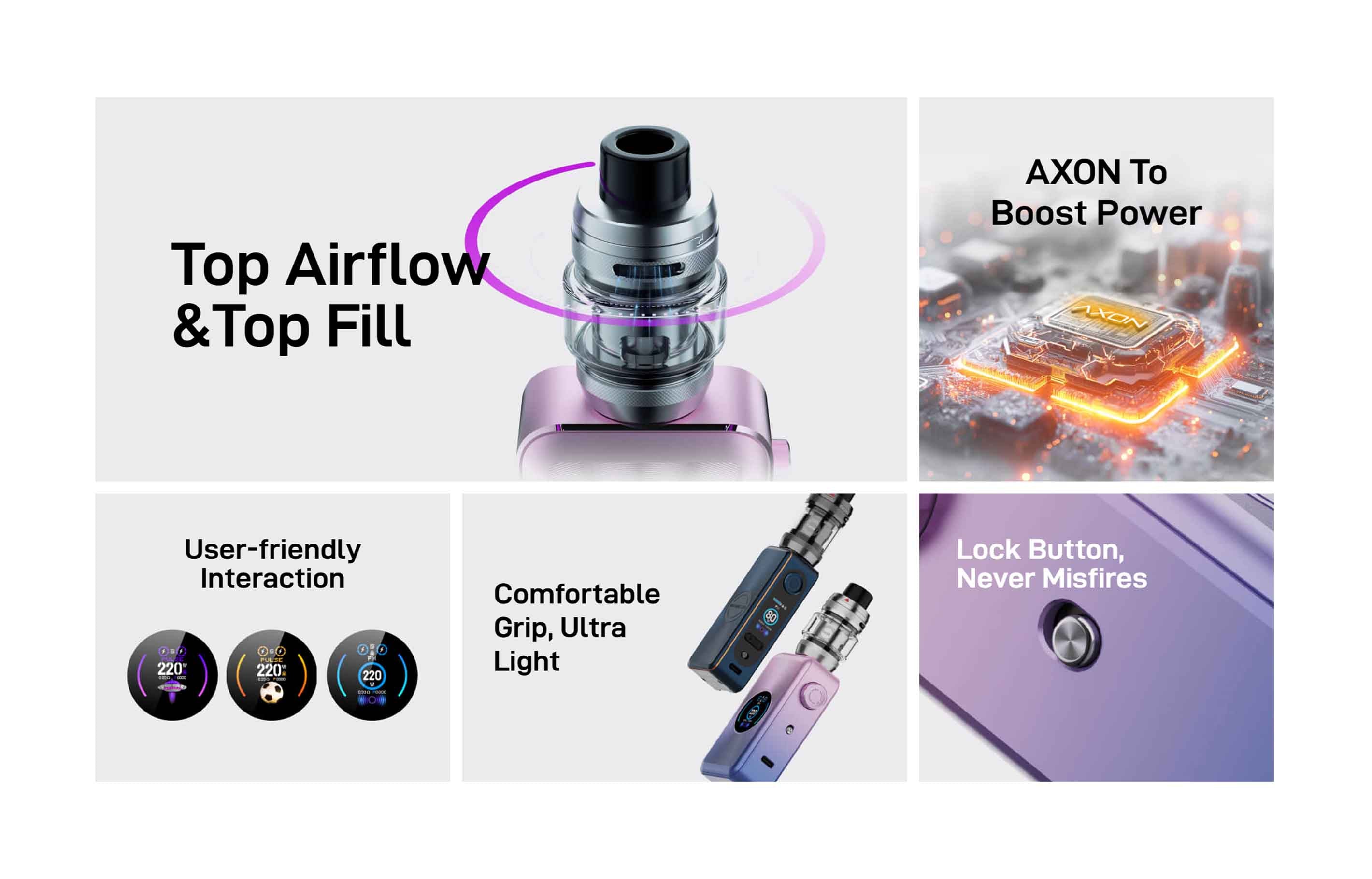 The Vaporesso GEN MAX 220W Starter Kit is engineered for both seasoned vapers and newcomers seeking a powerful, user-friendly experience. With a maximum output of 220W, this kit delivers dense clouds and rich flavor. The lightweight aluminum-alloy chassis ensures durability without added bulk, while the AXON chipset offers responsive performance across multiple modes, including Variable Wattage, Pulse, and Smart modes.