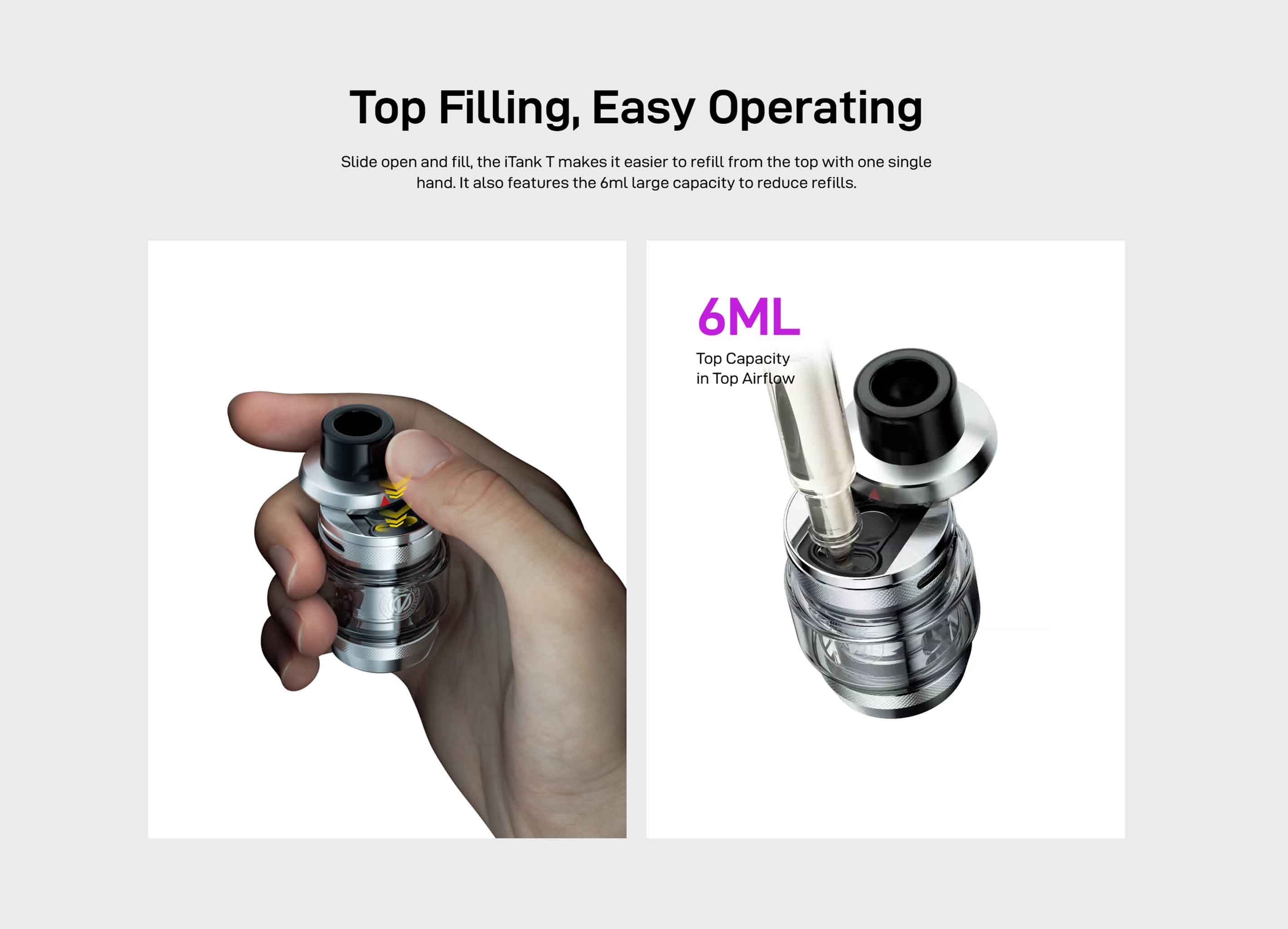 • Tank Capacity: 6mL iTank T with top-fill and top-airflow design
